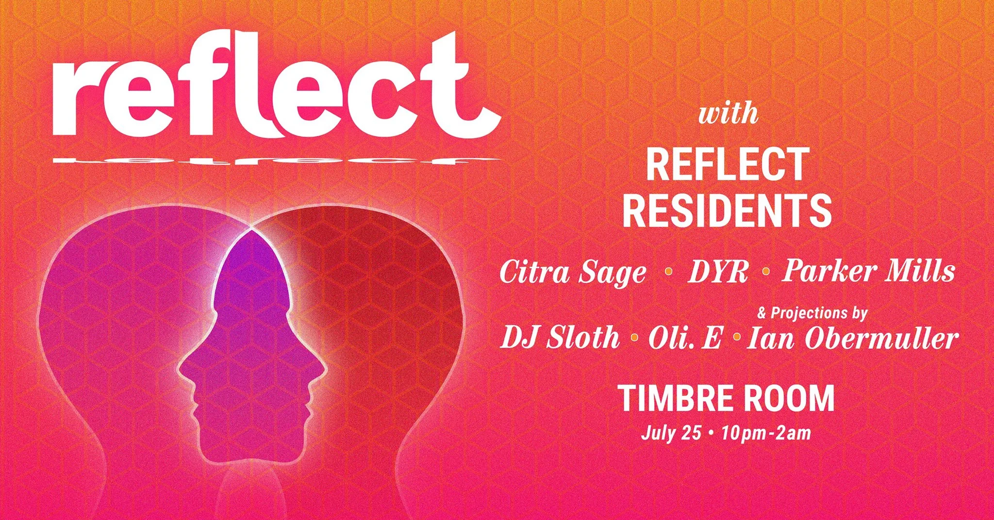 The Reflect crew takes over Timbre Room to provide the underground techno and house soundtrack for your dance journey into the night. Reflect Residents Citra Sage, DYR, Parker Mills, Sloth and Oli E are on the decks to get you dancing and Ian Obermuller providing visuals completing an audio visual adventure for your Thursday night. $10 cover.