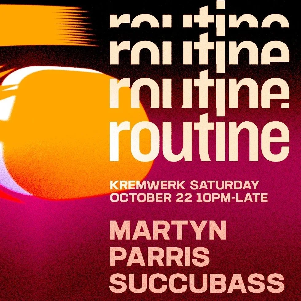 Routine features a night of two drum heavy, genre-bending club djs. We are proud to announce a double headliner with Martyn and Parris, AND with one of our favorite local heroes, Succubass.