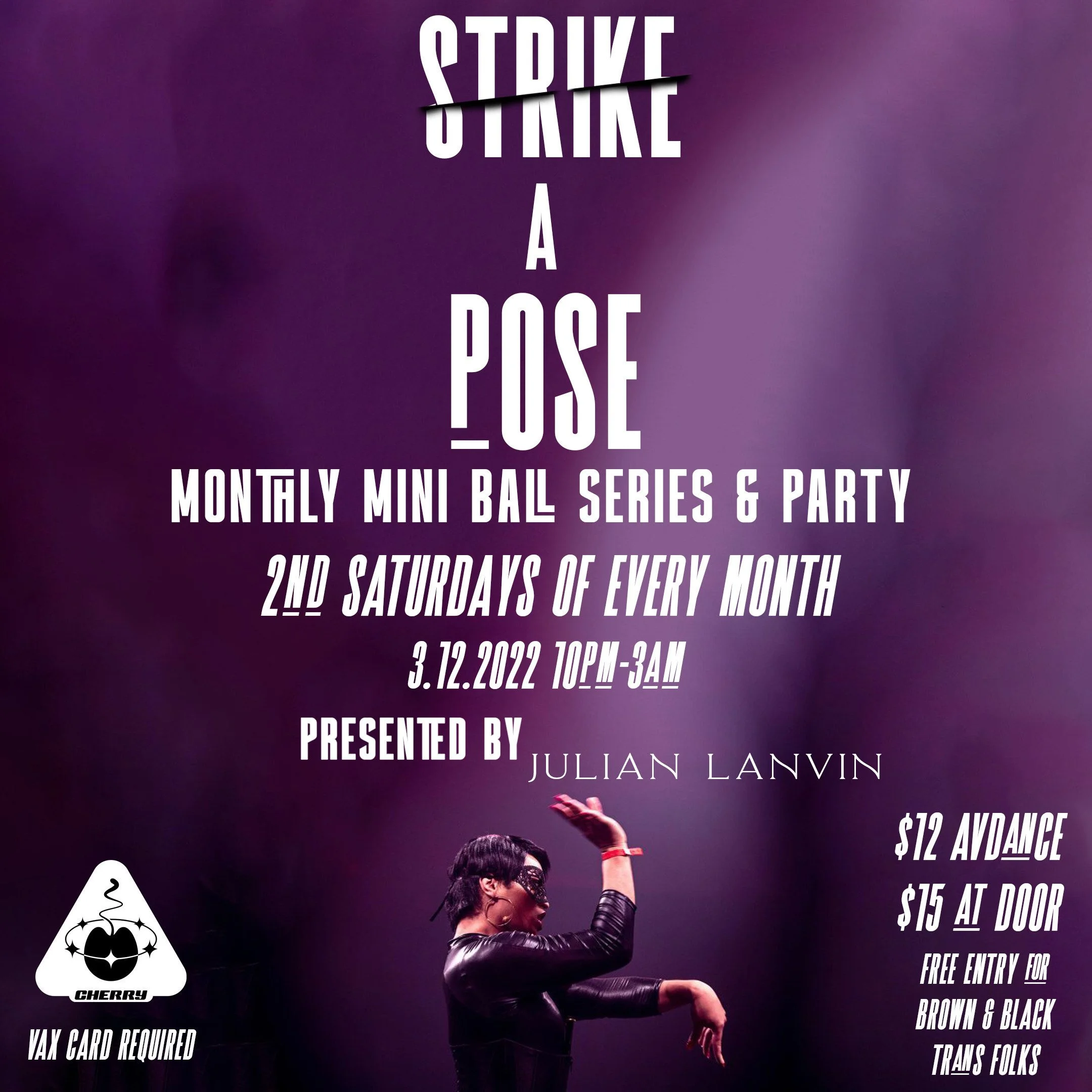 If you want authentic ballroom- we invite you to Strike A Pose. Join us for the reoccurring exclusive mini ball series and dance party that will have nothing short gagging for more. All categories are OTA (open to all) which will be Realness, Sex Siren, Performance, Runway, Face, and best dressed spectator.