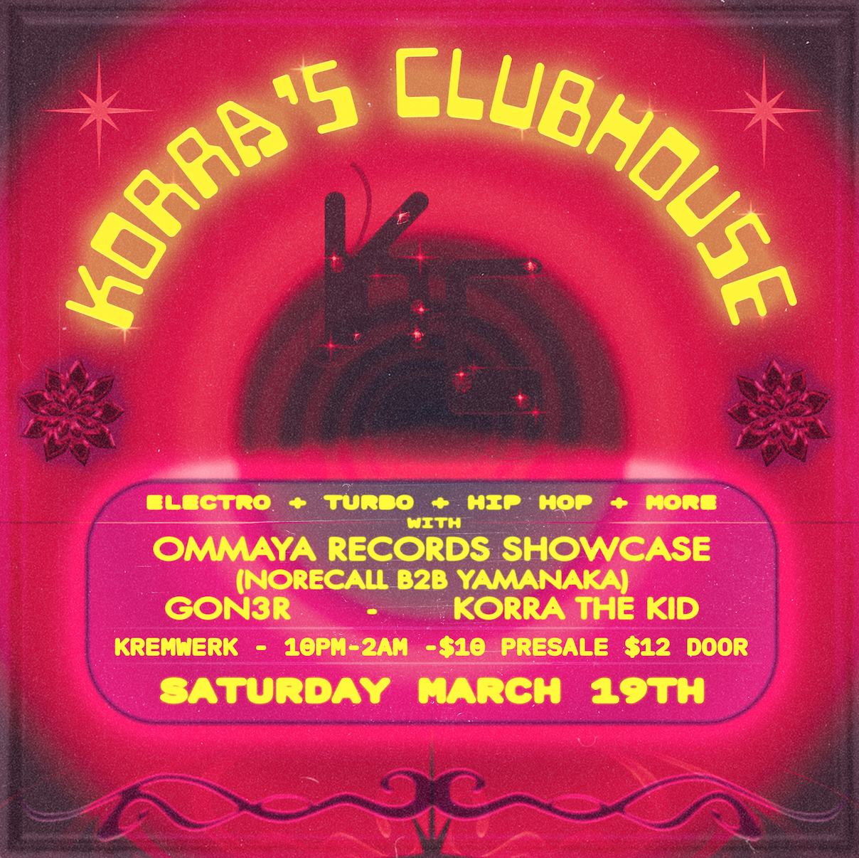 This Clubhouse we welcome a special 2 hour set from the boys at Ommaya records. Their left-field techno records are lit and sick and we love that. + A special closing set from Seattle's GON3R, dis one will be hot.