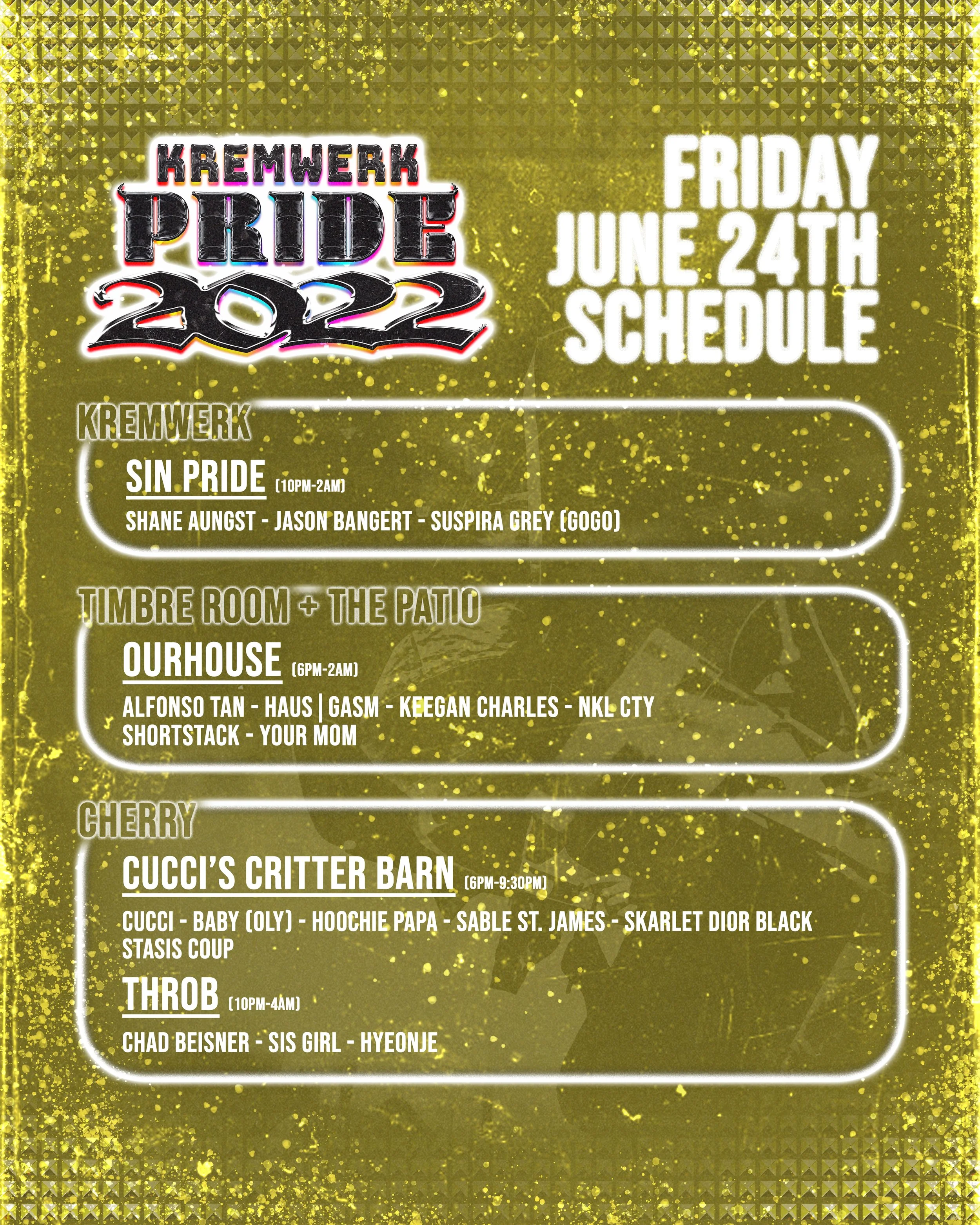 SIN is every 1st Saturday of the month at Kremwerk (this is a special PRIDE edition of SIN). RSVP to stay up to date with cover specials