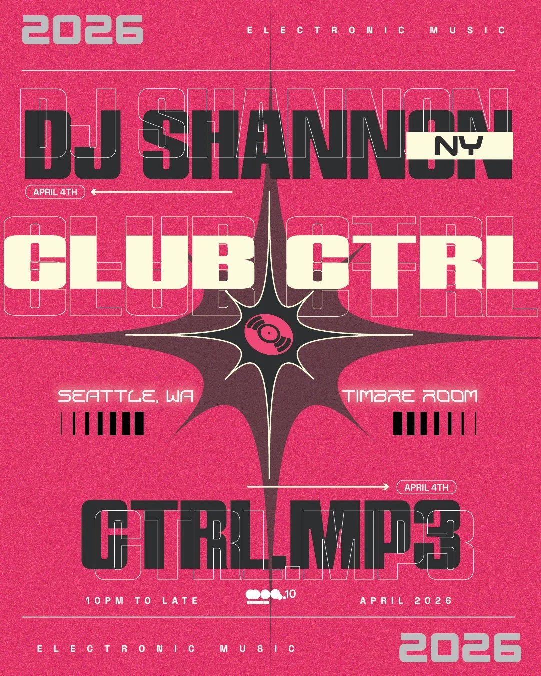 Club CTRL from House, Garage, Techno, to Jungle. An all-night experience from CTRL.MP3 bringing a huge range of styles and genres for the old heads to the youngins' in the crowd. CTRL.MP3 has been a staple and leader in the Seattle dance and electronic music scene since 2014.