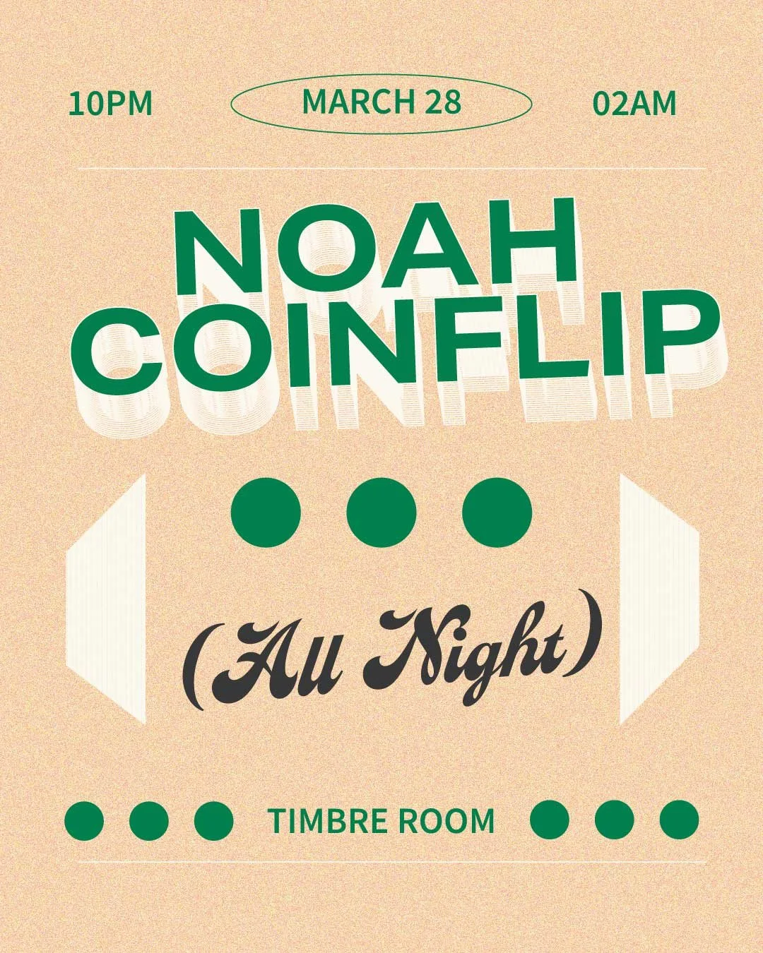 In the studio, Noah’s focus on analog warmth and meticulous craft extends into his label, Coinflip Cuts, a vinyl-first imprint whose releases receive regular play on KEXP. Whether behind the decks or in the studio, he delivers timeless, groove-heavy sounds built for the dancefloor.