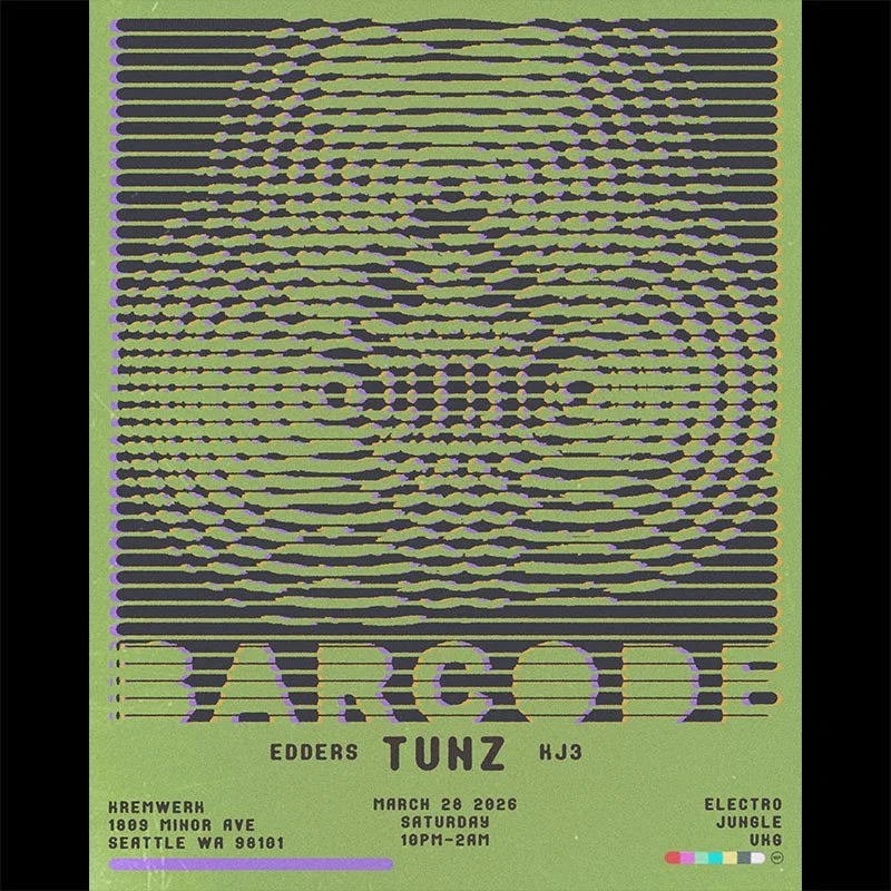 Back to All Events BARCODE: ukg, jungle, electro Saturday, March 28, 2026 10:00 PM Sunday, March 29, 2026 2:00 AM Timbre Room 1809 Minor Avenue Seattle, WA, 98101 United States (map) Google Calendar ICS get tickets! BARCODEFriday | March 27 | Kremwerk | 10PM to LATEGood things come in 3’s Mark your calendars, we will be heading off our next event in Kremwerk on Saturday, March 28 featuring our residents Edders & KJ3, + a very special guest: TUNZ tickets are live in our bio, see you all very soon.Artwork: Mia Pallazza’